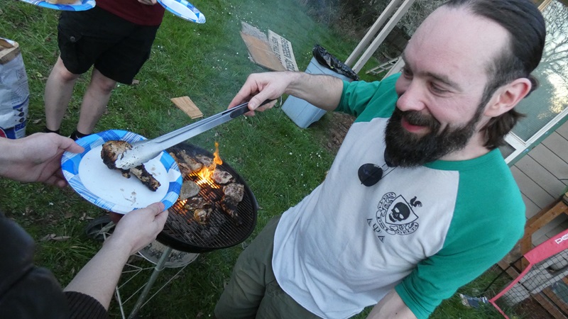 Led by David “Pulzer” Betts (Pledge Class Fall ’15), otherwise known as El Jefe, the brothers, alumni and special guests came together to crowdfund an impromptu barbecue to celebrate a beautiful day. The menu included burgers and–wait, I can’t be reading this right–chicken?!? *DLBWCK!*